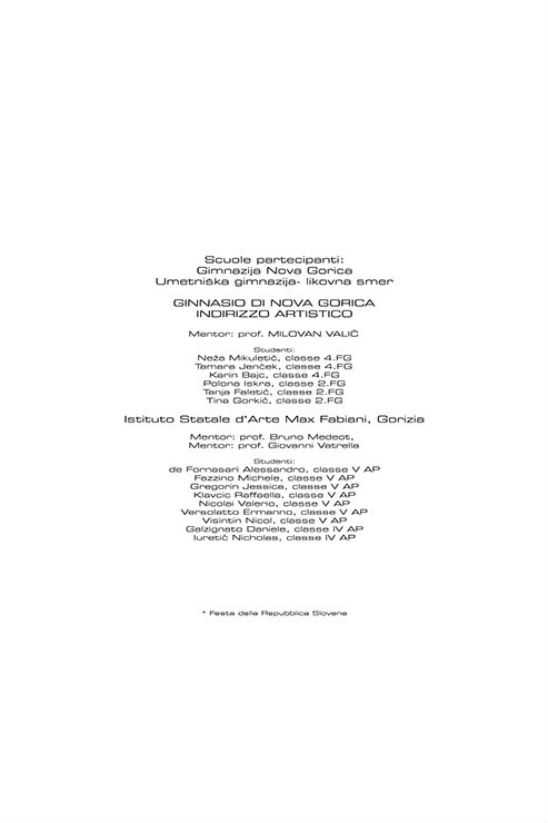 Si è trattato di studenti di quarta e quinta, ovvero Alessandro De Fornasari, Michele Razzino, Jessica Gregorin, Raffaella Klavcic, Valerio Nicolai, Ermanno Versolatto, Nicol Visintin, Daniel Galzignato e Nicholas Iuretic. I ragazzi di Nova Gorica che hanno partecipato sono stati Neza Mikuletic, Tamara Jencek, Karin Bajc, Polona Iskra, Tanja Faletic e Tina Gorkic, con l’aiuto del professor Milovan Valic.
