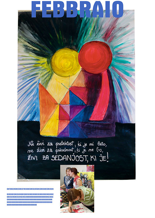 Nella parte inferiore delle pagine sono riportate alcune fotografie scattate durante i laboratori creativi, che vedono gli studenti e gli utenti del centro alle prese con pennelli e con tele. I ragazzi del Fabiani hanno potuto contare sull’aiuto di due docenti, ovvero Bruno Medeot e Giovanni Vatrella.